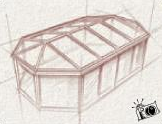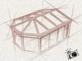 C'est une verrière dont l'esthétique a évolué. Une gouttière périphérique lui donne un charme particulier, plus doux et moins anguleux. 2 pans coupés avec arêtiers en toiture.